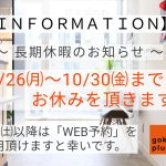 【 長期休暇のお知らせ 】 10/26…