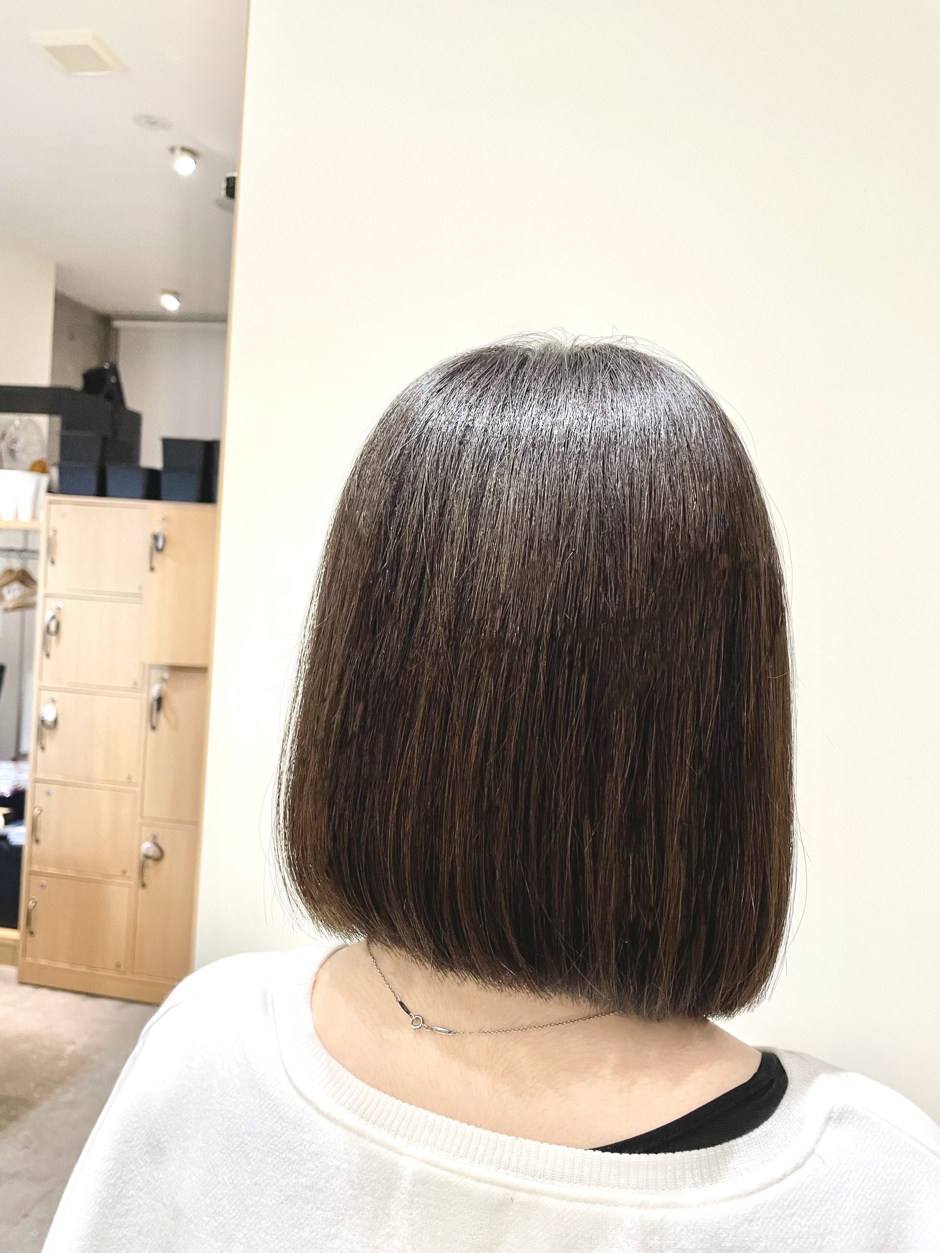 広がりを抑えて重めなワンレンにすることでツヤと手触りがアップ!